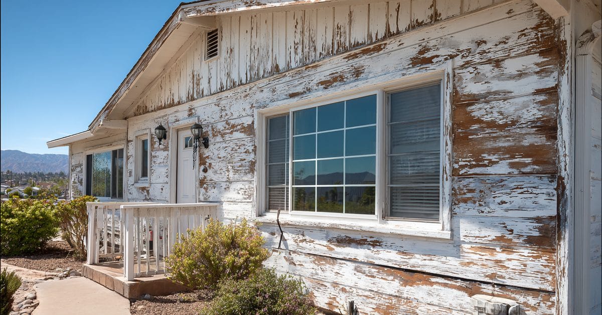 If you can see raw wood, stucco, or fiber cement board peeking through where the paint has worn away, that’s the clearest possible signal: it’s time to repaint. Bare substrate is exposed to moisture, UV, and temperature swings with no protection. Wood will start checking, splitting, and rotting. Stucco will craze and crumble. This isn’t cosmetic, this is functional failure.