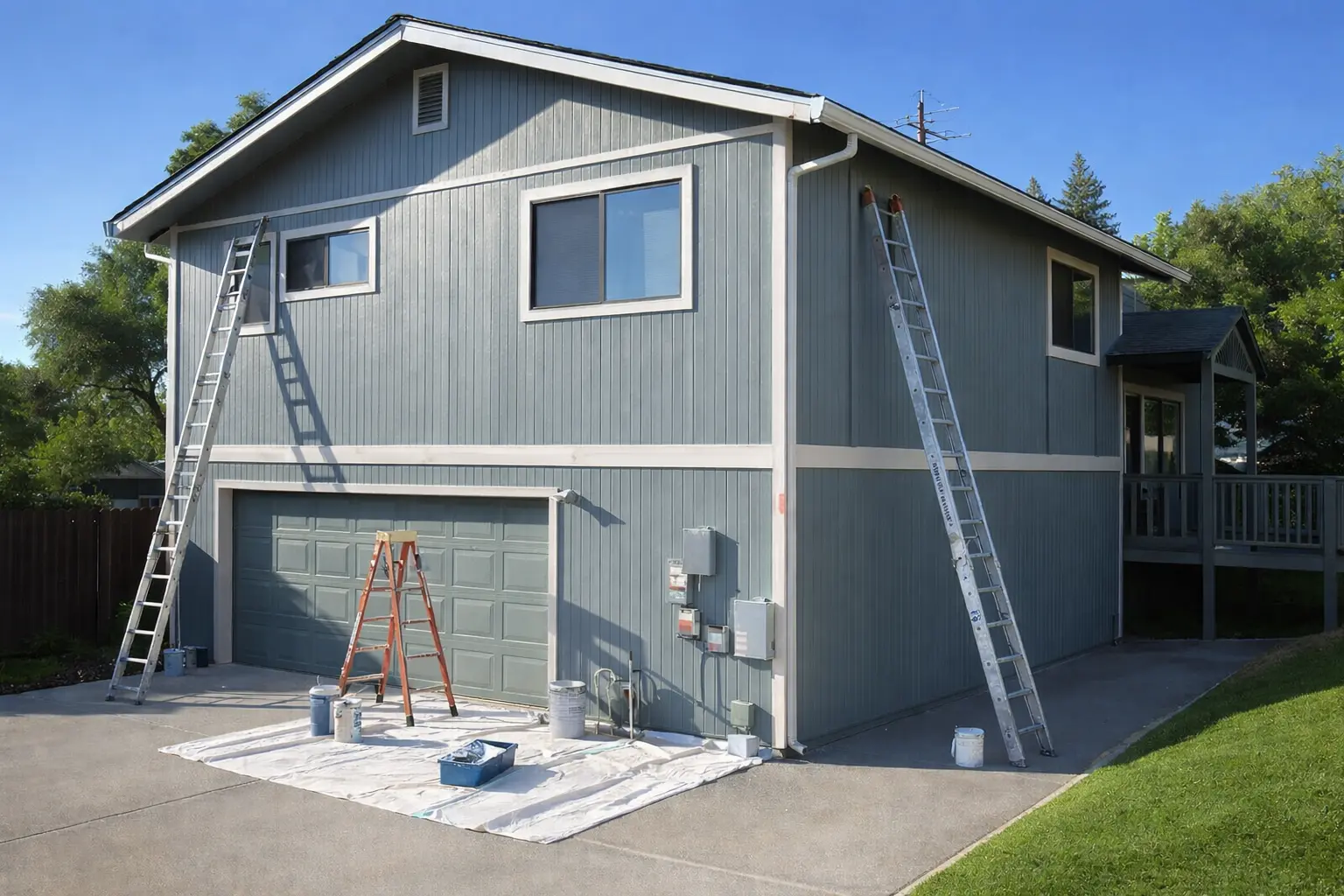 On most of the exterior painting jobs I do in Auburn and Placer County, the garage door is part of the overall scope, one surface among many, including siding, trim, fascia, and the front door. The garage door gets treated the same way as the rest of the exterior: thorough prep, correct primer for the material, and exterior paint formulated to hold up to weather and UV.