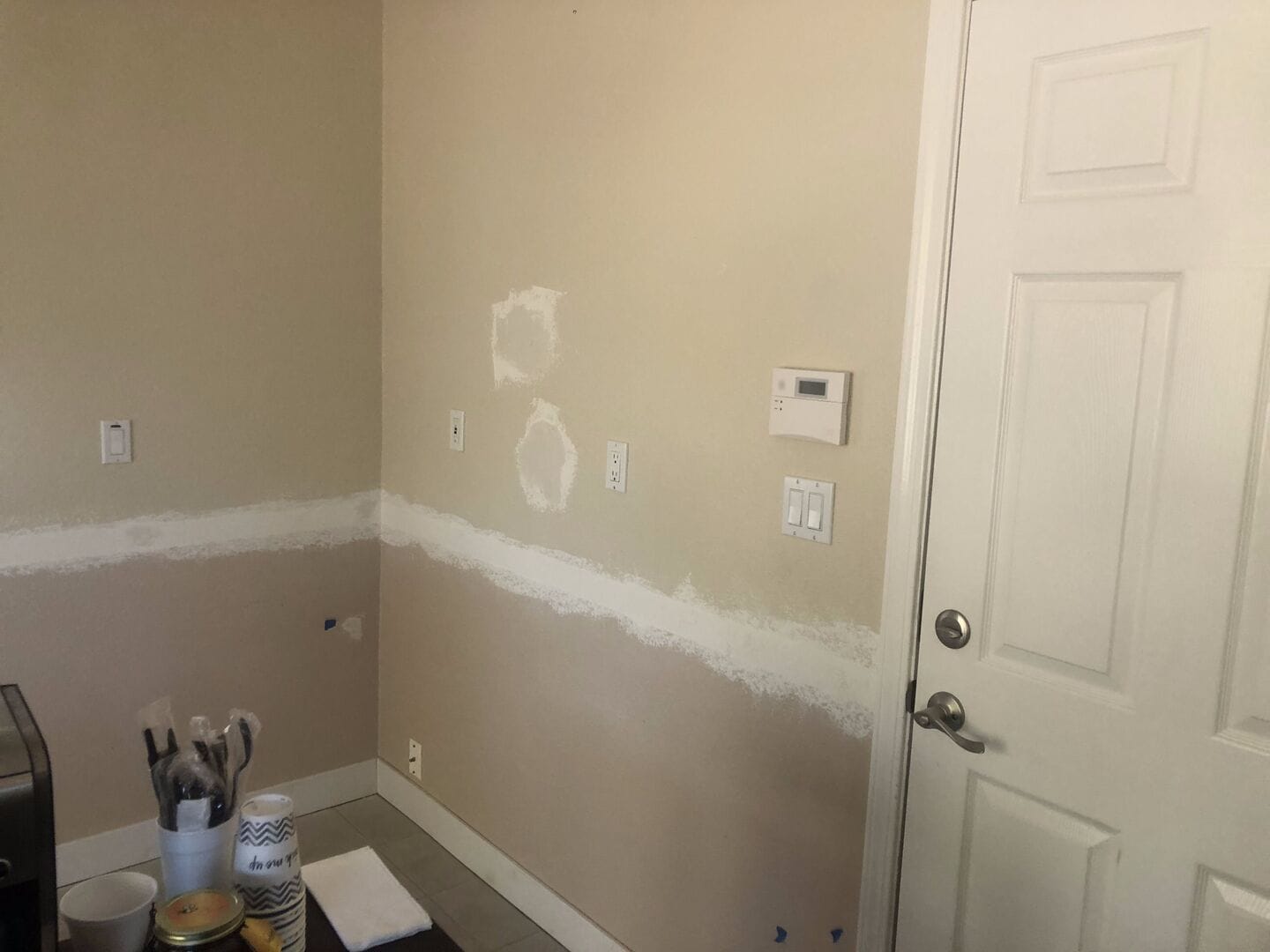 Yes. Doors, trim and baseboards are part of the job. Mike cuts in corners and edges by hand, sands trim between coats and makes sure everything lines up cleanly. This is the detail work that separates a professional interior paint job from a DIY one.